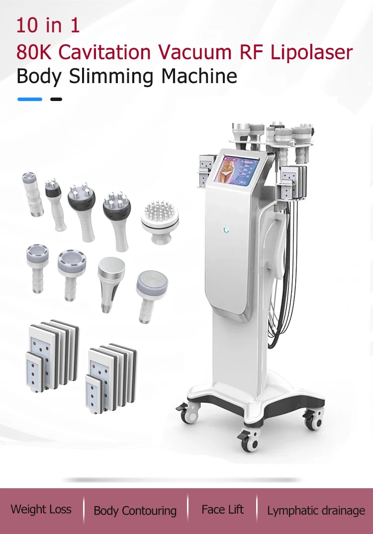 Professional 80K Cavi Vacuum Machine 10 in 1 Body Slimming Machine Lymphatic Drainage Face Lift
