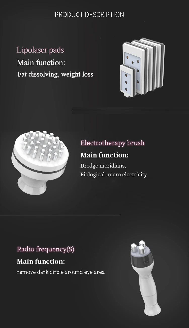 1. 7 technologies-80K Cavitation + RF + Vacuum + Micro-current + Heat + Magnetic vibration+lipolaser